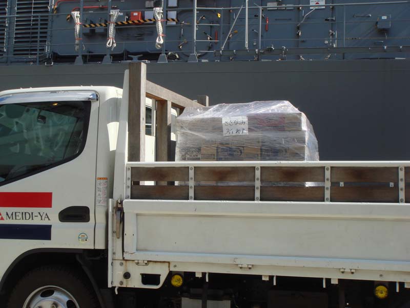 積荷には「さざなみ 2/11神戸港」